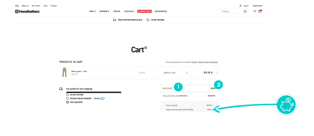 Не знаете как точно работят кодовете за отстъпки в Horsefeathers.eu? Предлагаме ви няколко стъпки как бързо и лесно да приложите промокодове при покупка:
