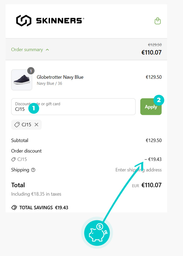 Копирайте или запишете кода за отстъпка и натиснете бутона „Към магазина“. След това ще бъдете пренасочени директно към онлайн магазин Skinnersfootwear.eu