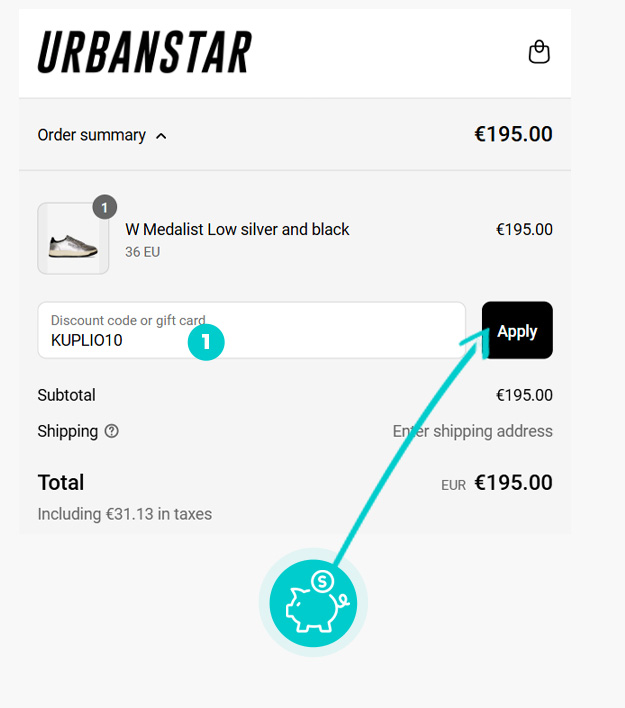 Изберете продукта в онлайн магазин Urbanstaroma.com, който ви интересува, кликнете върху бутон „Add to Card" и продуктът автоматично ще се появи в кошницата за пазаруване. В пазарската количка, в дясната лента под списъка с продукти, ще намерите поле „Discount Code or Gift Card“. Там поставете копирания код за отстъпка или го въведете ръчно и потвърдете с бутон „Apply".